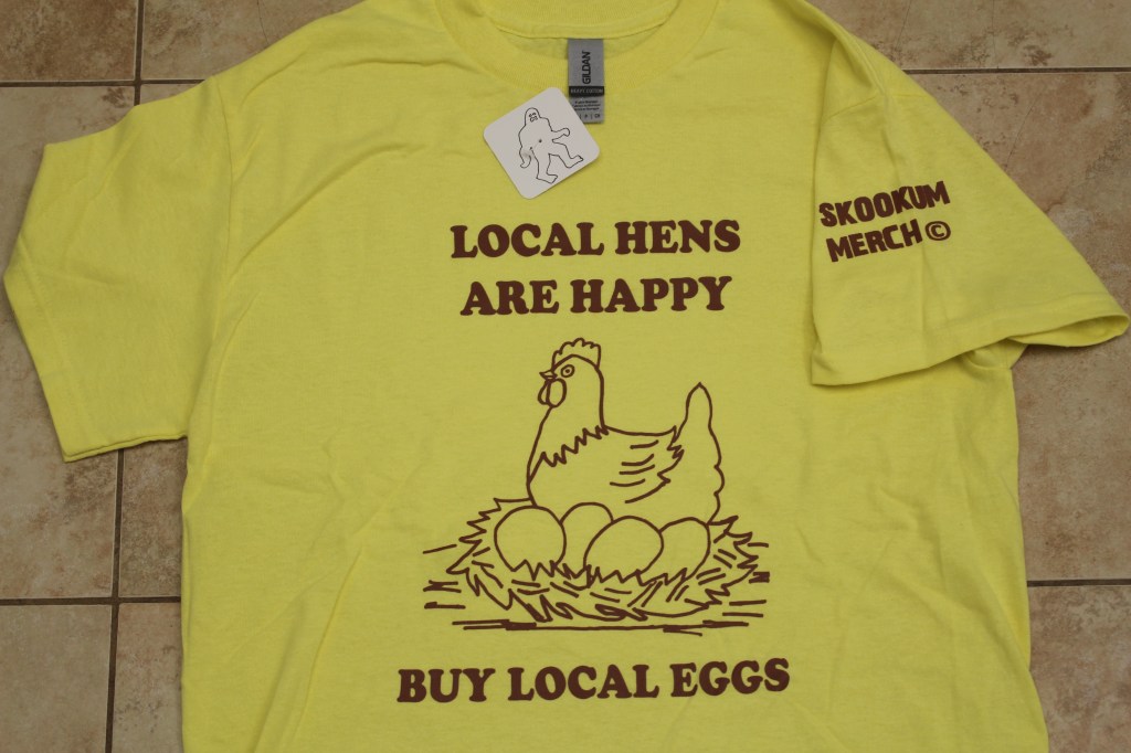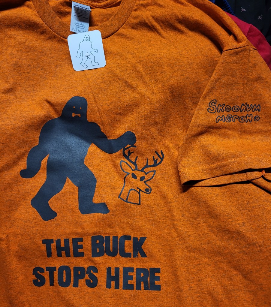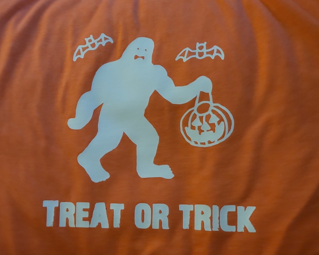 Hi Friends, I do not know how to build a website but after COVID came, I started a T-shirt printing business at home, home-made T-shirts! I made some silk screened shirts years ago but had to learn there are many new techniques since silk-screening. I did not go with print-on-demand but use real heat transfers at home on a real heat press. We can make different colors, styles, and sizes. Here are a few designs I’ve already made. The ‘white’ one on the orange shirt is glow in the dark. Thank you for visiting and let me know via email if you’d like to order anything in particular. Our pricing is a process because I am still trying to figure things out and we have heavy cotton T-shirts and more soft-cotton now too, but the range is usually between 15$-25$ a shirt, I can mail them to you also. Skookum! I have some sweatshirts printed and ready to print for Christmas shirts too.